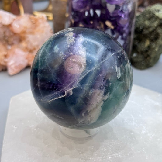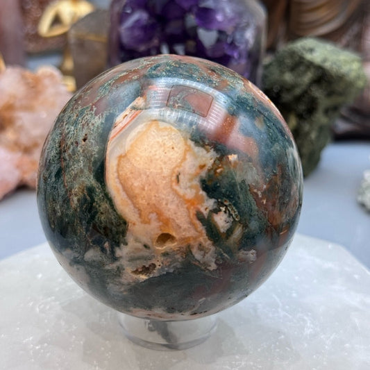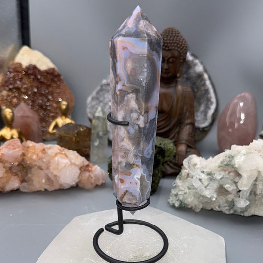 Flower Agate Double Terminated Wand – Blue & Peach Tones
