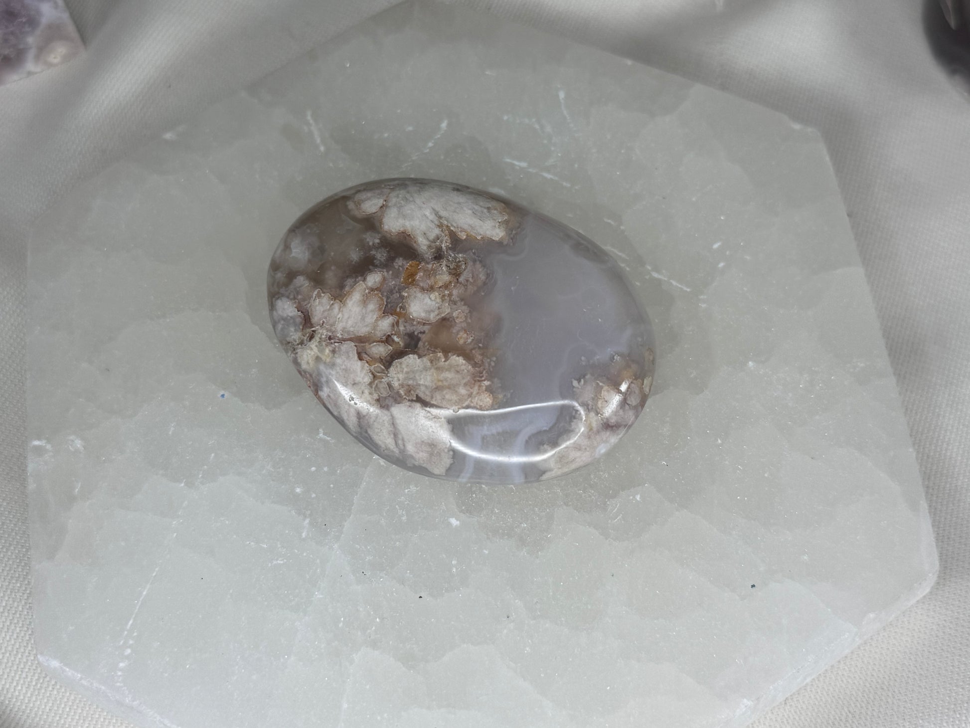 Flower Agate Palm Stone- Lavender with Large Flowers 🪻