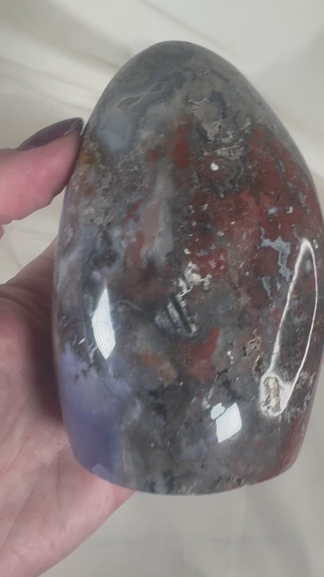 Experience the rare beauty and history of the Violet Agate Freeform. Sharing properties similar to Jasper and Chalcedony, which is an ancient stone has been mined since 3500 BC.
